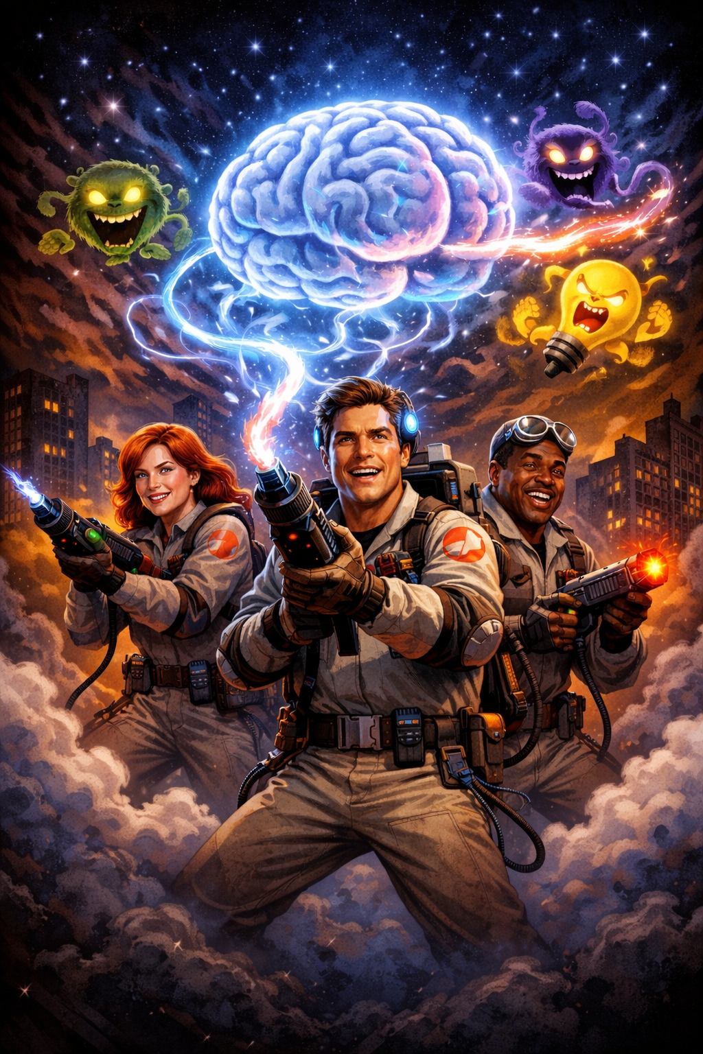 Il est conseillé de faire cet exercice en étant serein et en s’amusant. Nous pouvons par exemple enfiler le costume d'un chasseur de pensées (un brain buster 😁) et tirer plus vite que son ombre sur la pensée qui surgit afin de l'empêcher de dégénérer en raisonnement.
